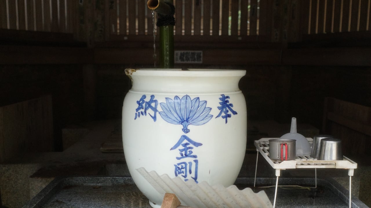 寺創建時、道了尊自ら井戸を掘り、地中から鉄印を掘り出しましたのが大雄山の重宝「御金印」です。御金印を取りだすと霊泉が湧き出したのが金剛水です。